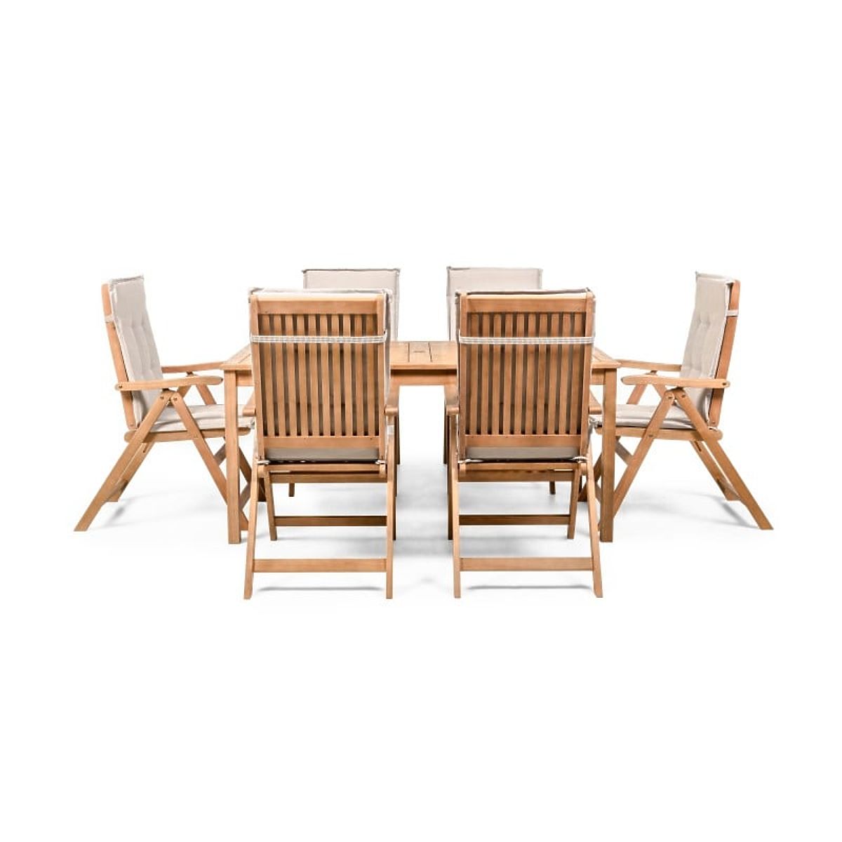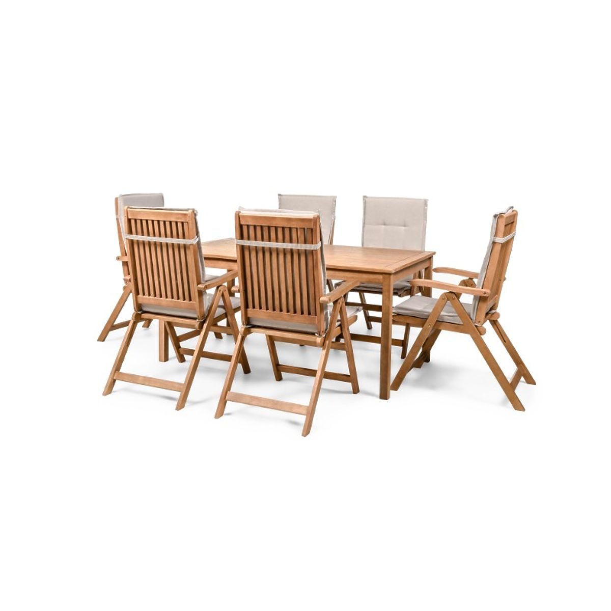 Lukahome.hu » Kerti bútorok / Kerti szettek / Familis kerti szett asztal 160 cm + 6 szék állítható háttámlával és világosszürke párnákkal