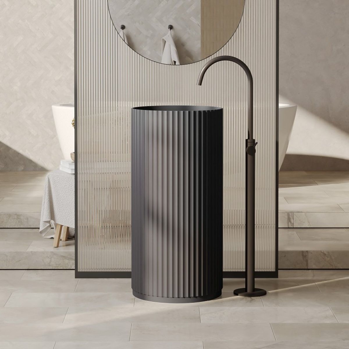 Szabadon álló, sötétszürke, bordázott Ciriola mosdó. .. többet