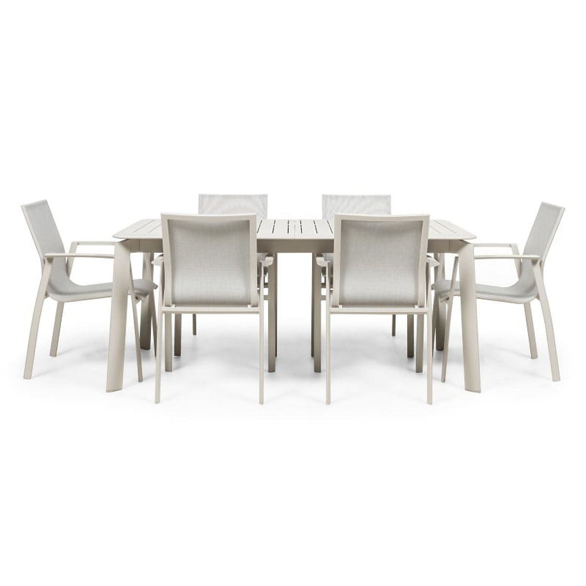 A Canelli egy modern terekhez és kényelmes pihenéshez tervezett kerti garnitúra. Az alumínium szerkezet finom bézs árnyalatban ötvözi az eleganciát és a tartósságot, és remekül ellenáll a változó időjárási viszonyoknak. Az asztal kihúzható funkciójának köszönhetően könnyedén készíthet helyet nagyobb összejövetelekhez és közös pillanatokhoz a friss levegőn.