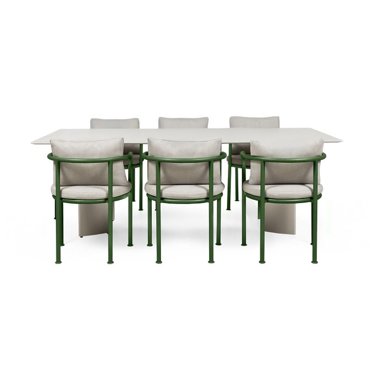 Lukahome.hu » Kerti bútorok / Kerti szettek / Amarello kerti garnitúra, 220 cm-es asztal + 6 szék, alumínium, világos bézs/zöld