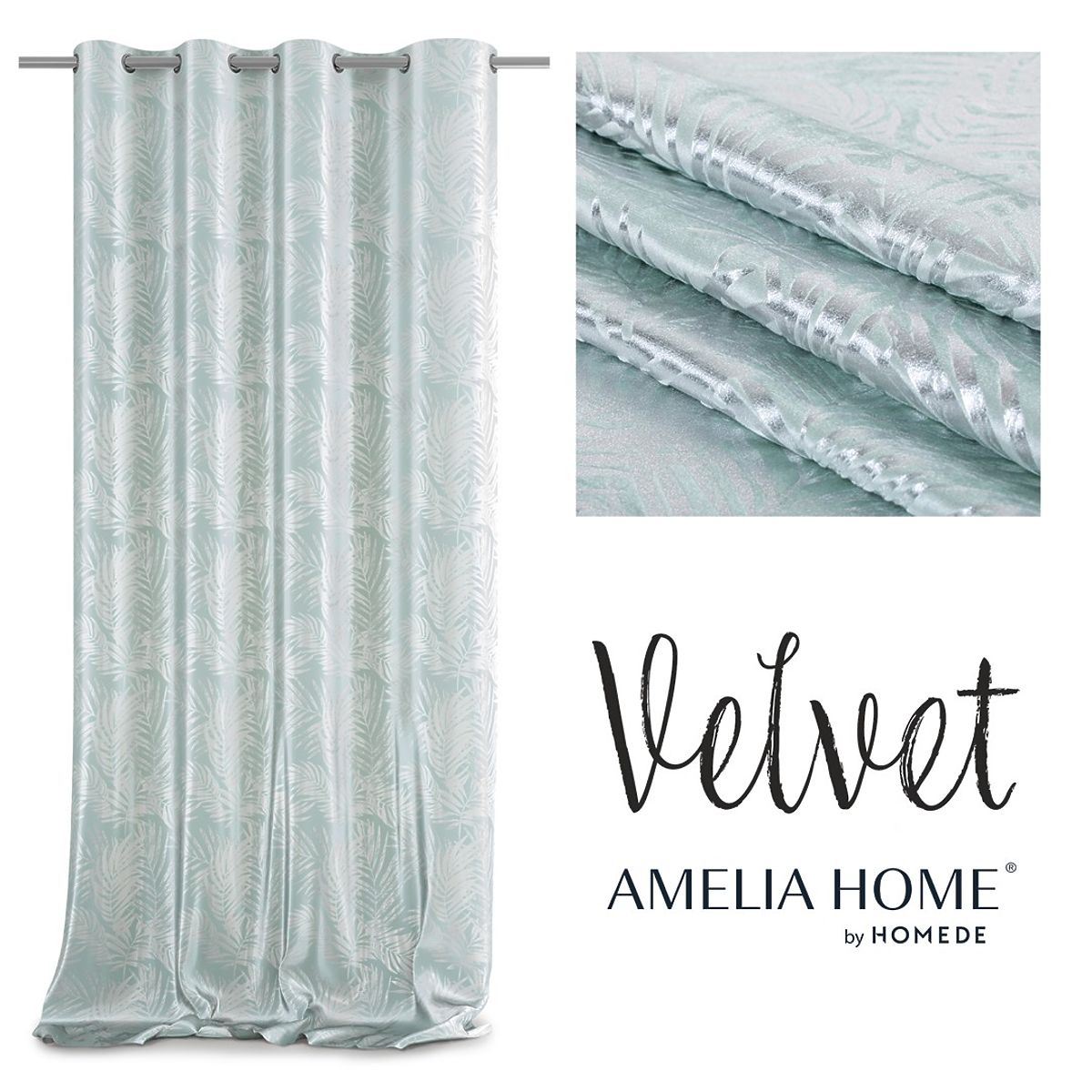 Lukahome.hu » Függönyök és függönyök / Függönyök / SILVERLEAVES függöny menta szín nyomtatott glamour stílus ezüst ringlik bársony 140x245 AmeliaHom