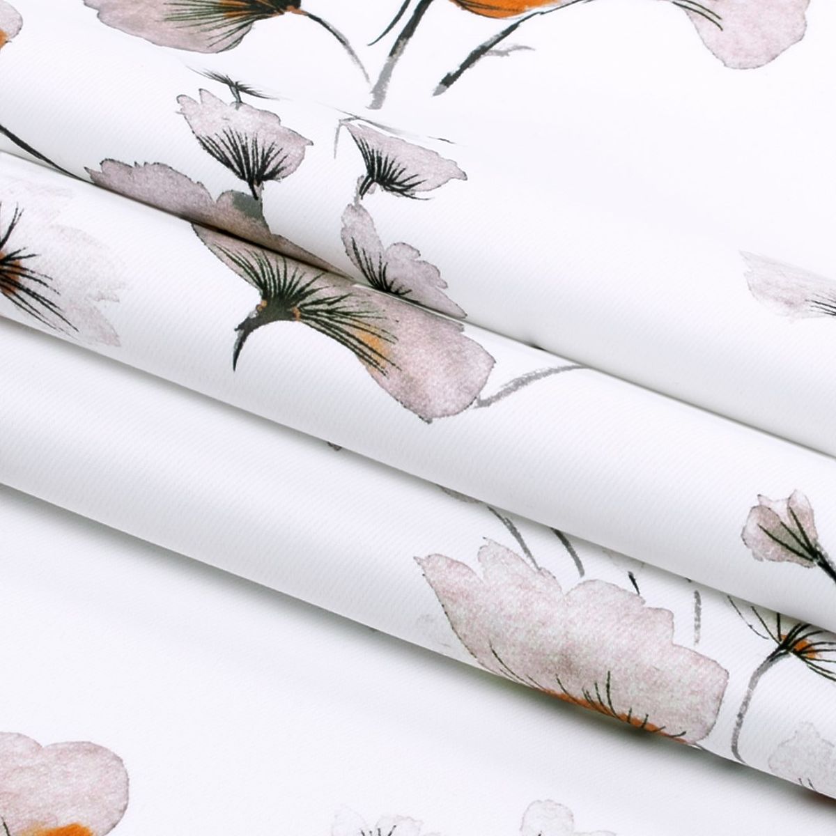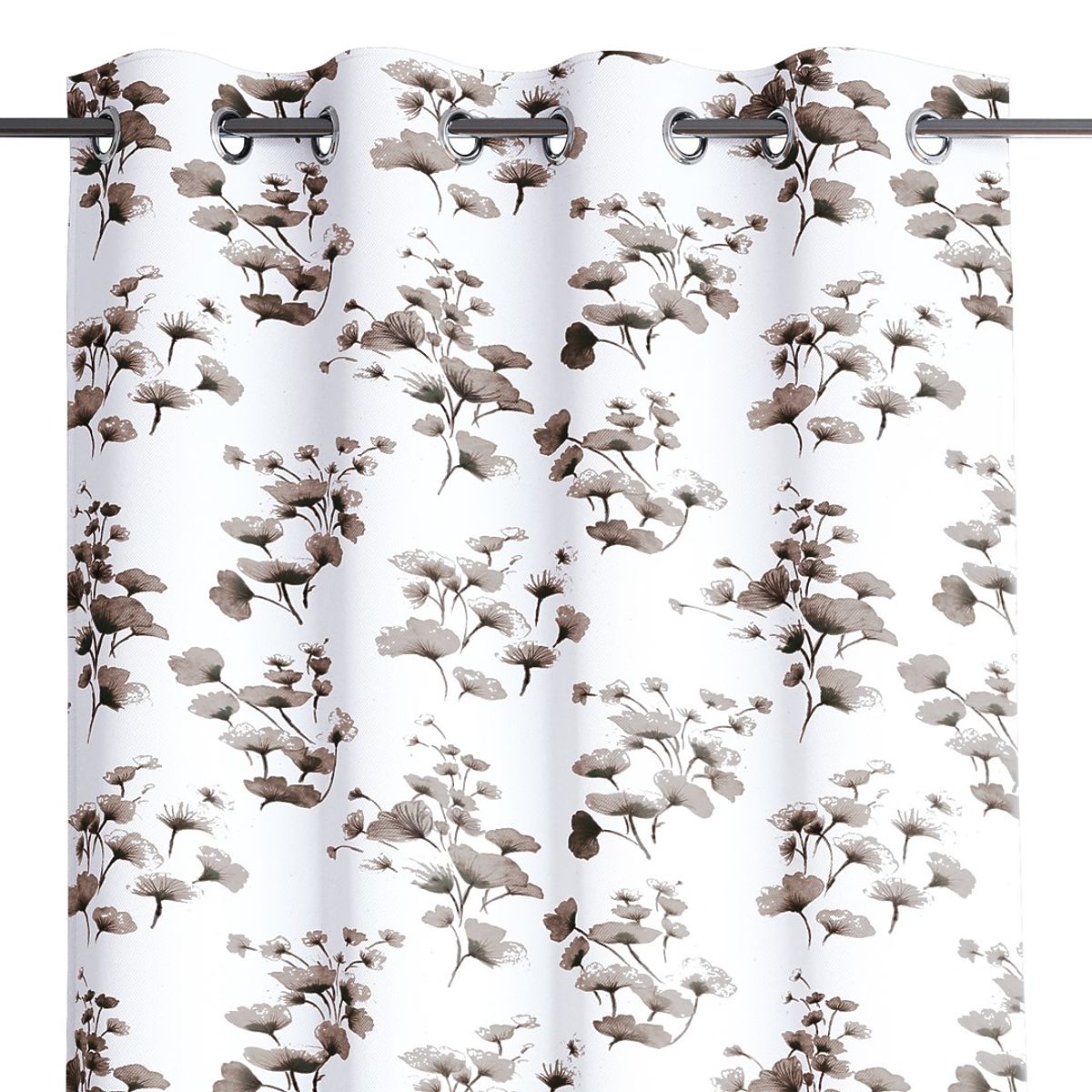 Fehér blackout függöny növényi motívummal és ezüst fűzőlyukakkal. .. többet