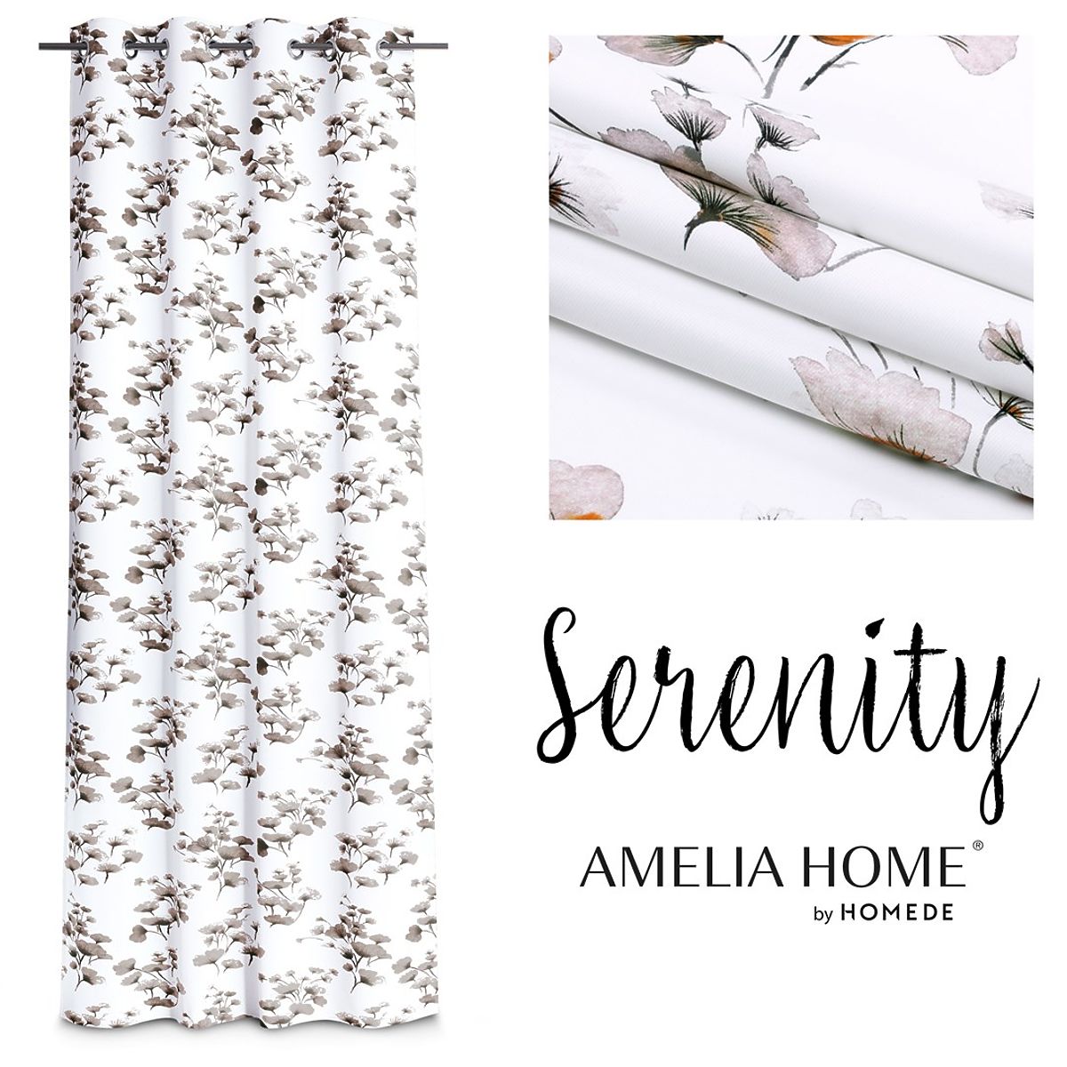 Lukahome.hu » Függönyök és függönyök / Függönyök / SERENITY fehér színű függöny nyomtatott növényi motívummal, klasszikus stílus, ezüst fém fűzőlyukakk