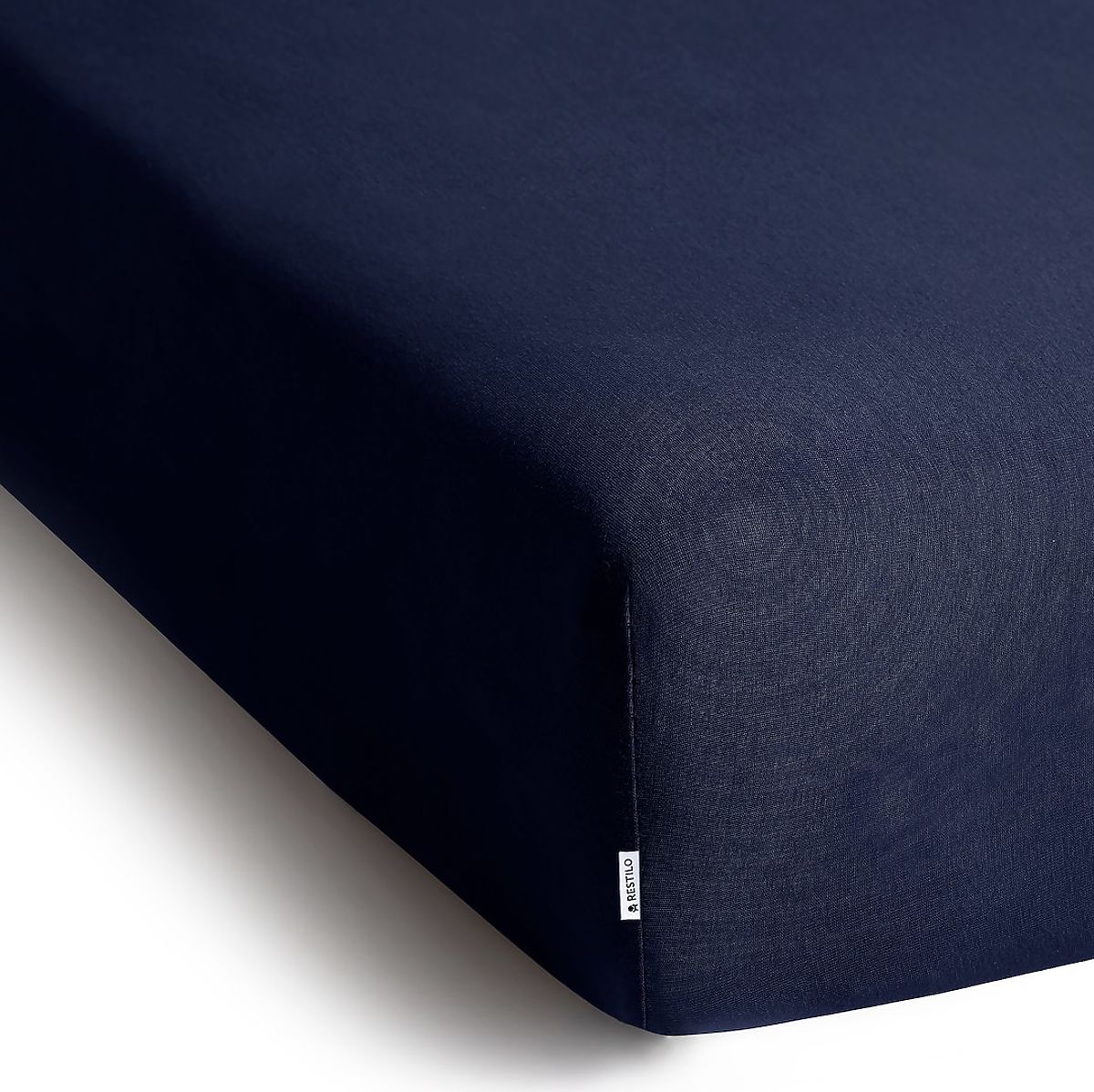 Tengerészkék jersey lepedő, klasszikus stílusban, 220-240x220 cm méretben. .. többet