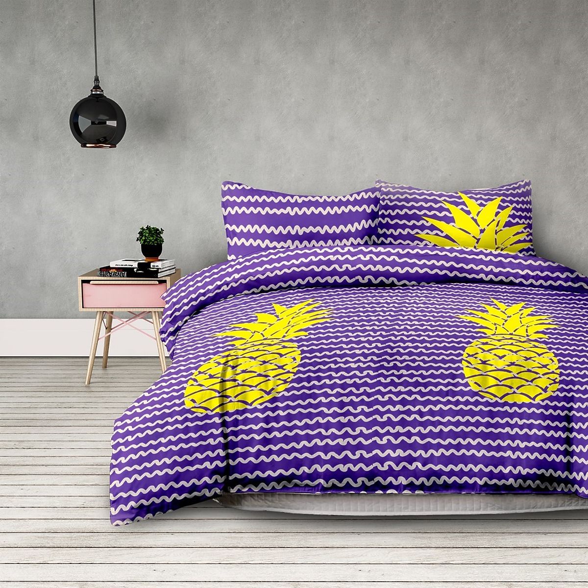 Lila színű, modern stílusú ágyneműhuzat nyomtatott mintával. .. többet
