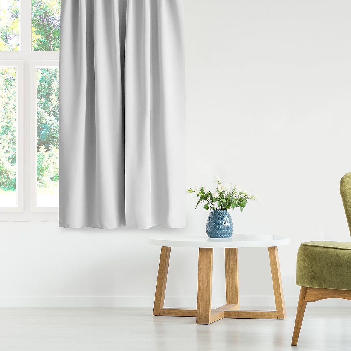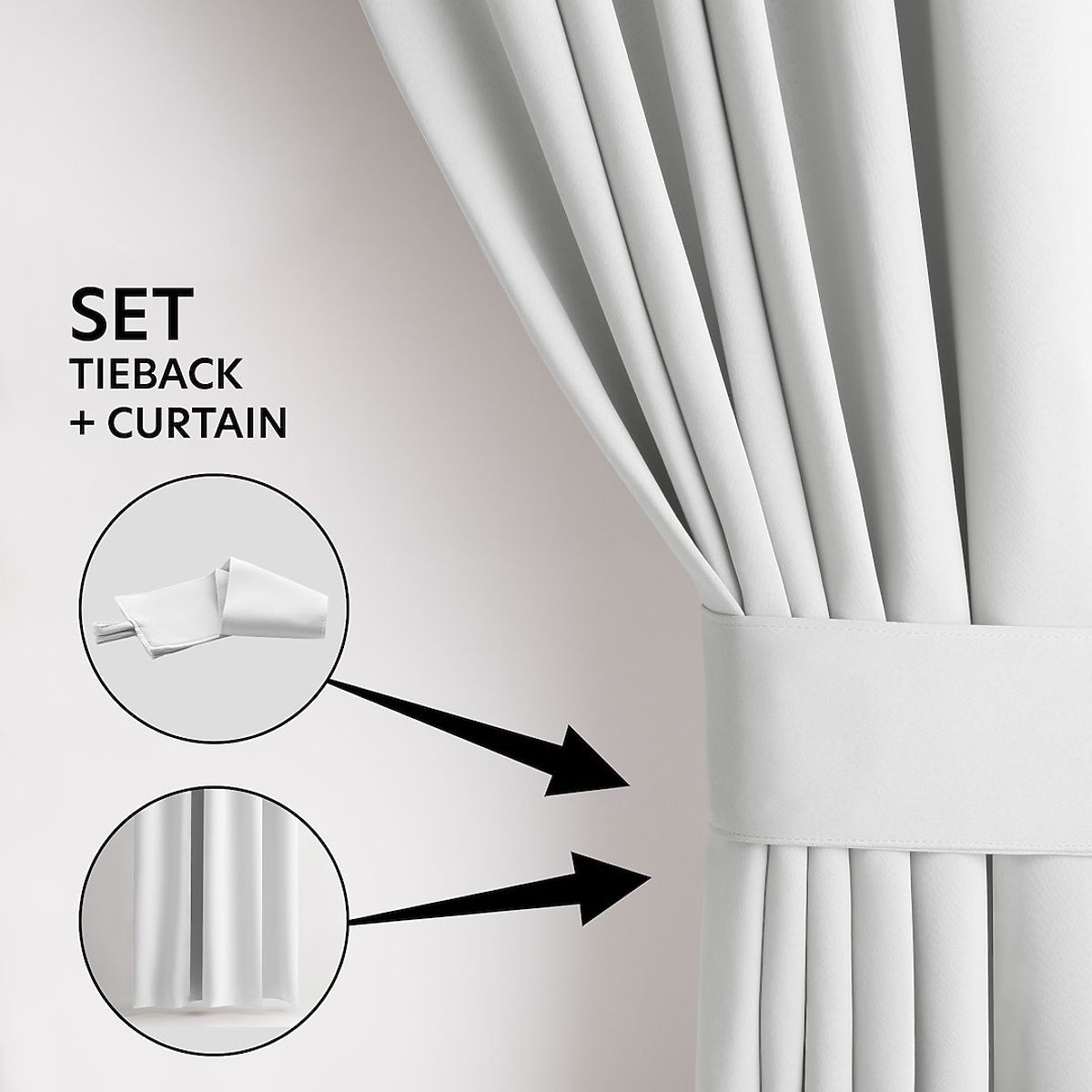 Fehér blackout függöny ezüst karikákkal és rögzítő sávval. .. többet