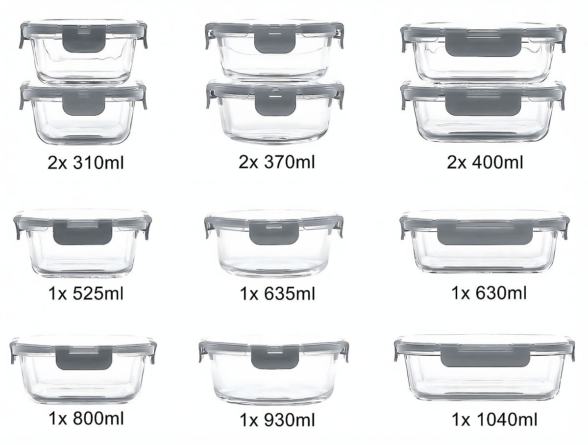 CATONIA ételtároló üvegedények - 12 darabos készlet