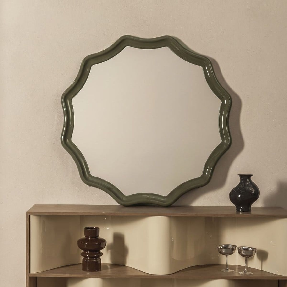 Kerek alakú Luppo tükör zöld-szürke MDF keretben. .. többet