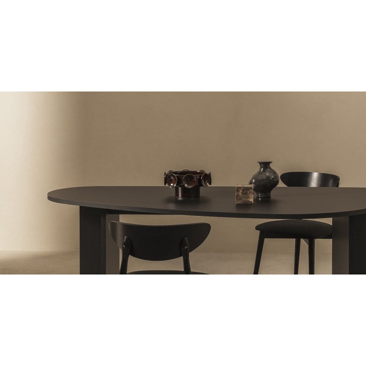 Szabálytalan alakú, fekete étkezőasztal 10 személyre. .. többet