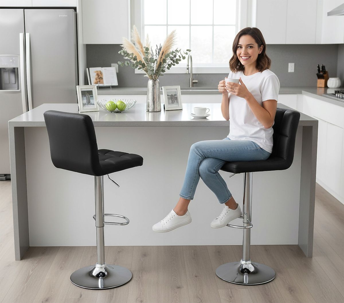✅360°-ban forgatható - A modell teljes mozgásszabadságot biztosít a forgó konstrukciónak köszönhetően, amely lehetővé teszi a felhasználó számára a 360 fokos forgást. Ez a funkció lehetővé teszi az asztal vagy bár körüli könnyű mozgást anélkül, hogy az egész széket fel kellene emelni vagy eltolni.