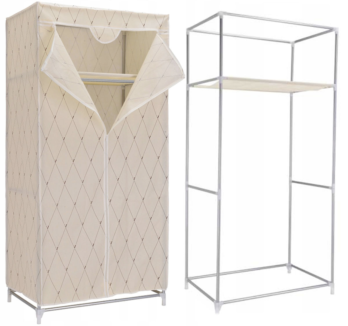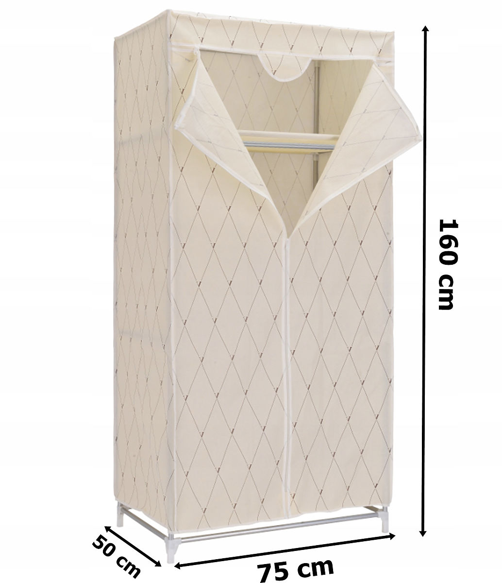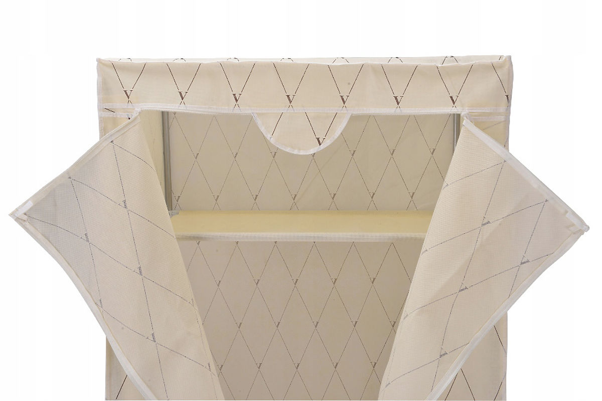 A szekrény acélkeretekből készült, amelyek a vázát alkotják. A keretre légáteresztő, minőségi anyag van feszítve nyomtatott mintával. Könnyen karbantartható és praktikus, a polc ideális sapkák, sálak, kesztyűk vagy más apróságok tárolására. A szekrény fő részében lehetőség van ruhák vállfára akasztására is. Könnyű és stabil szerkezete lehetővé teszi a szekrény bármikor történő összecsukását, áthelyezését vagy átrendezését.